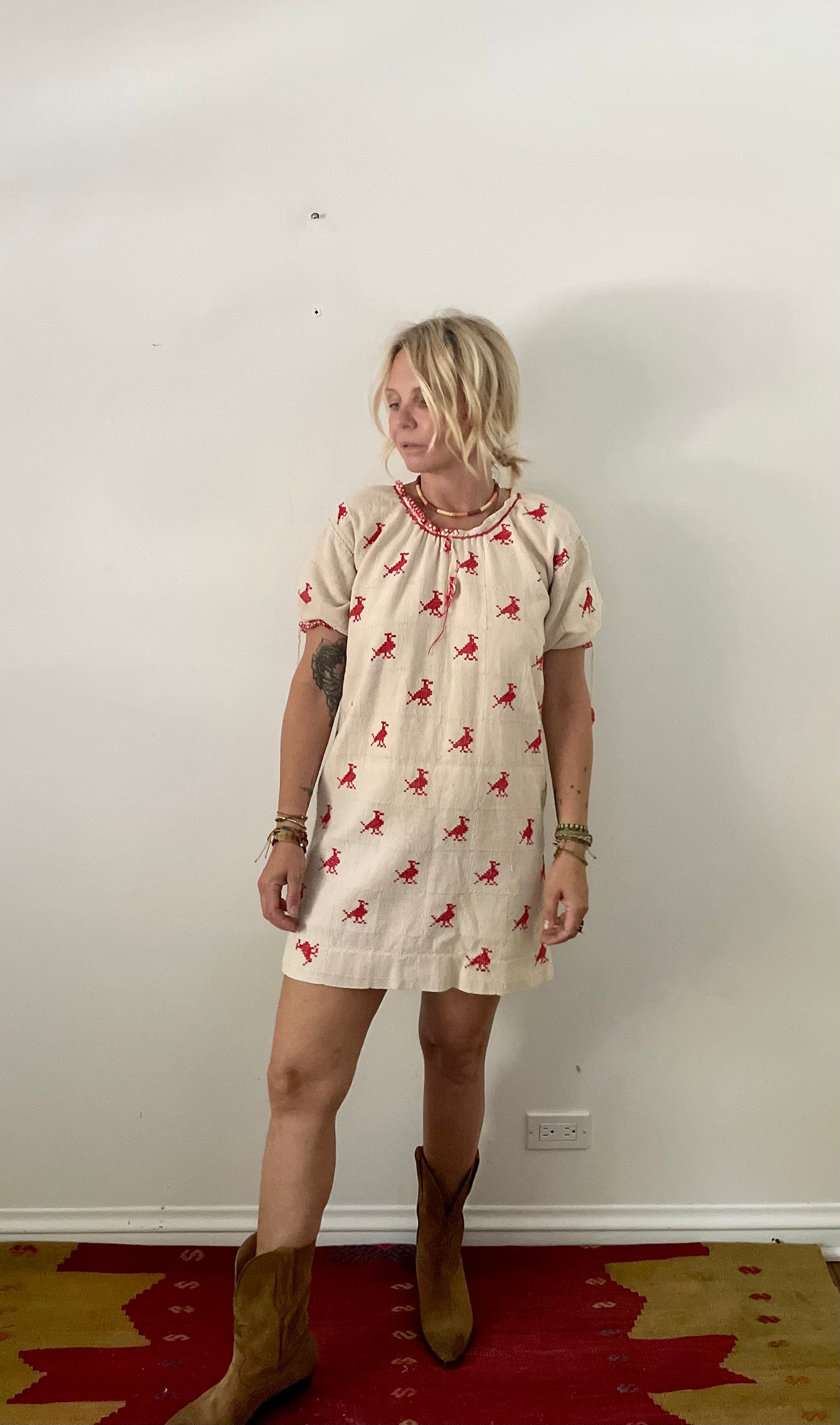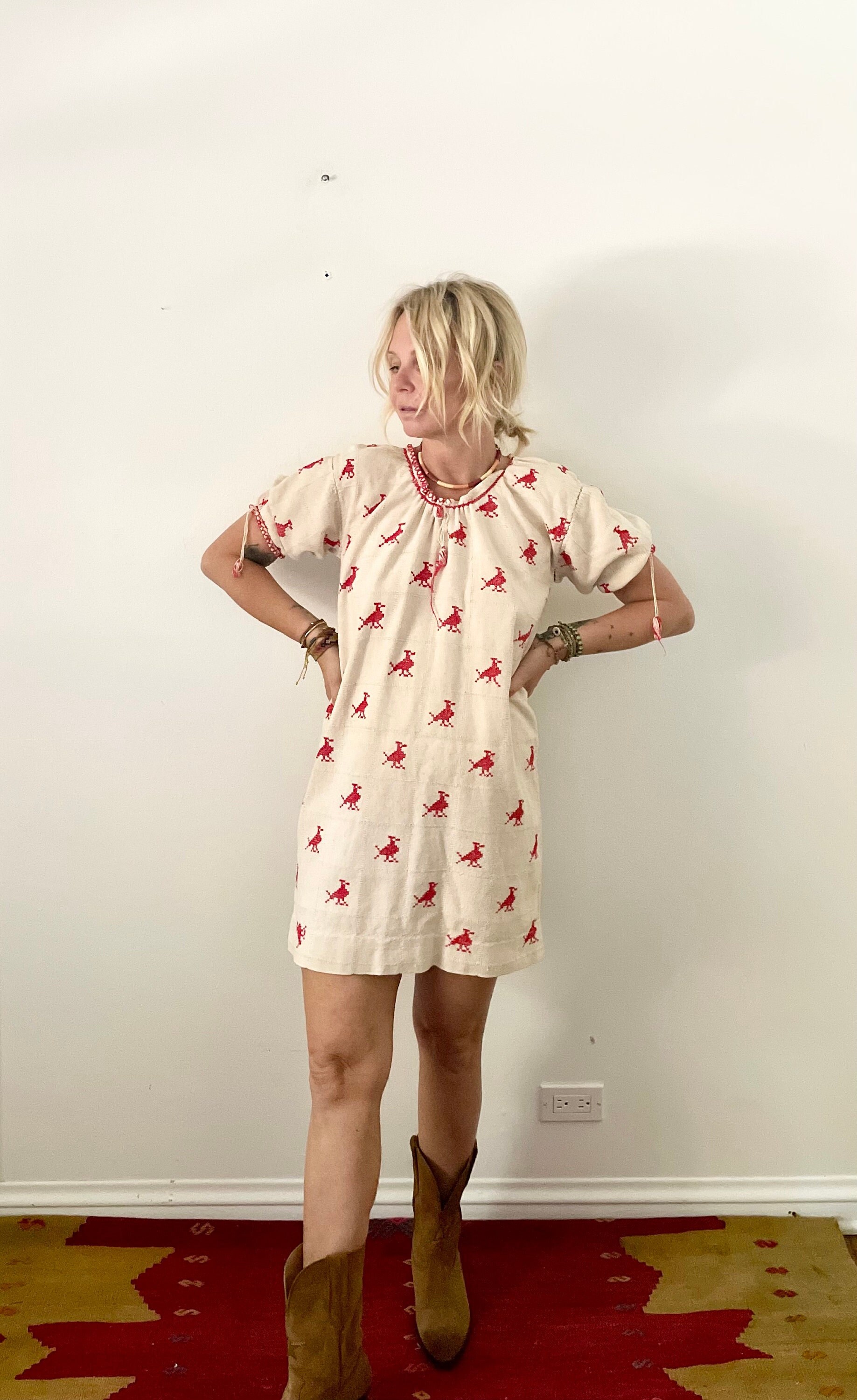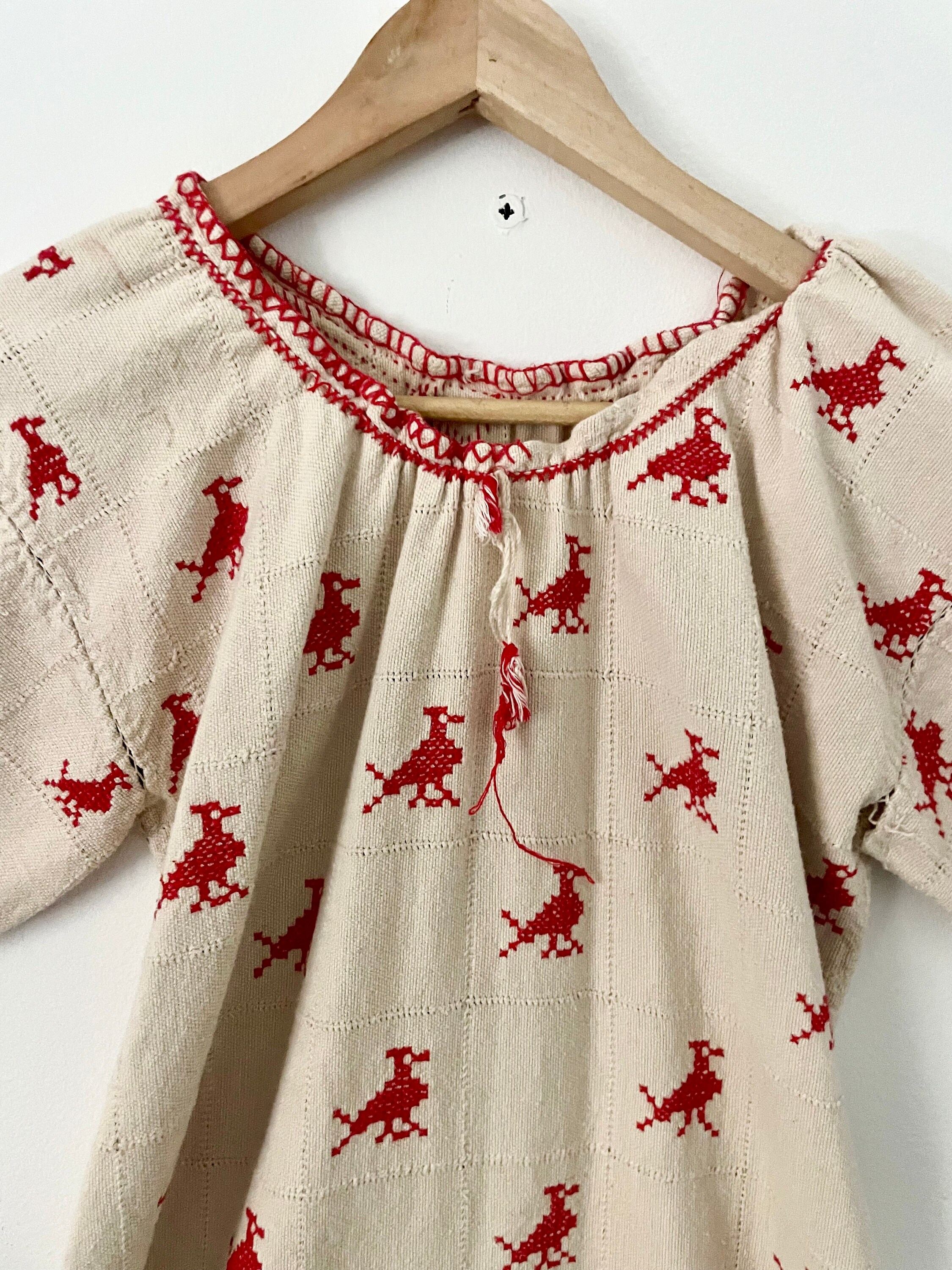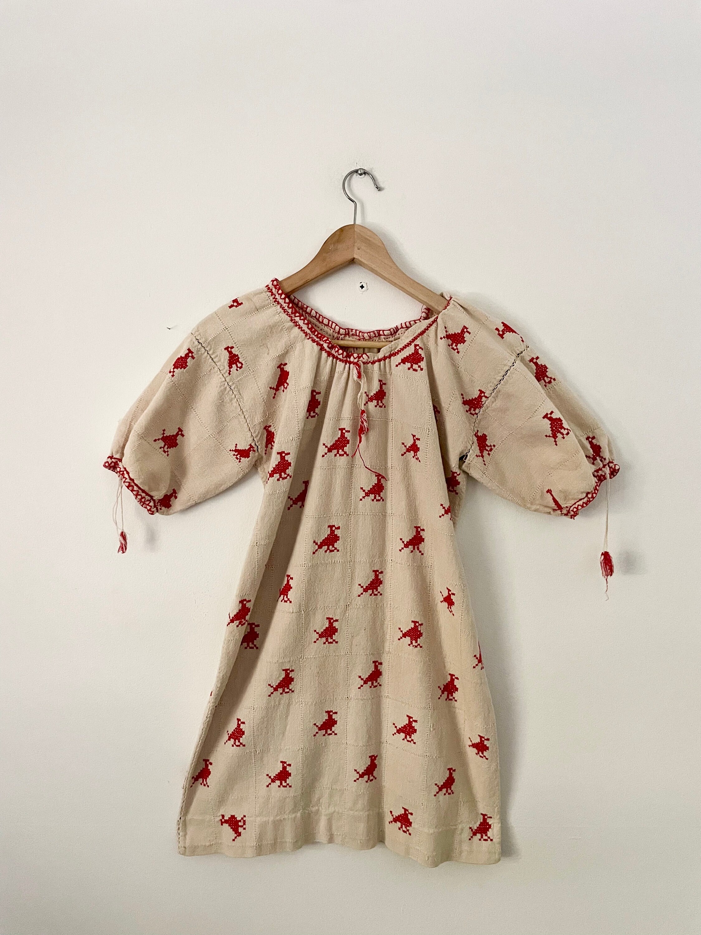Beautiful 60s Oaxacan tunic/mini dress. Hand loomed and hand stitched in natural cotton