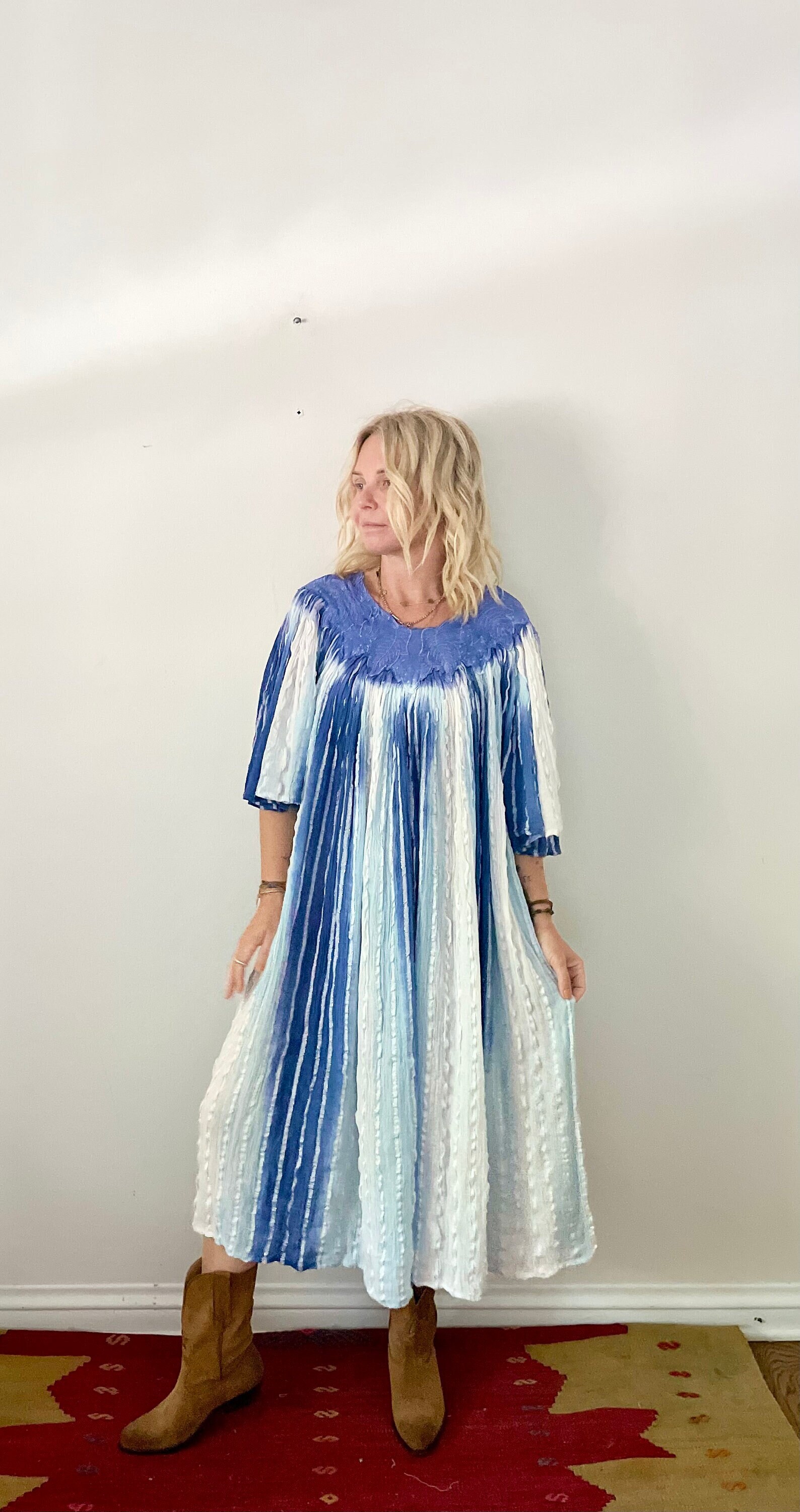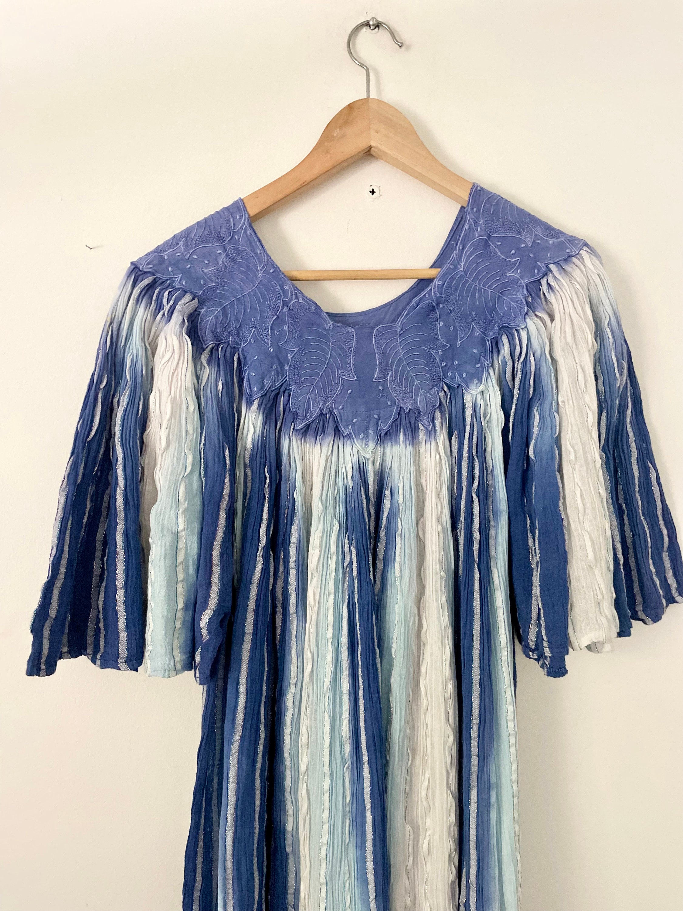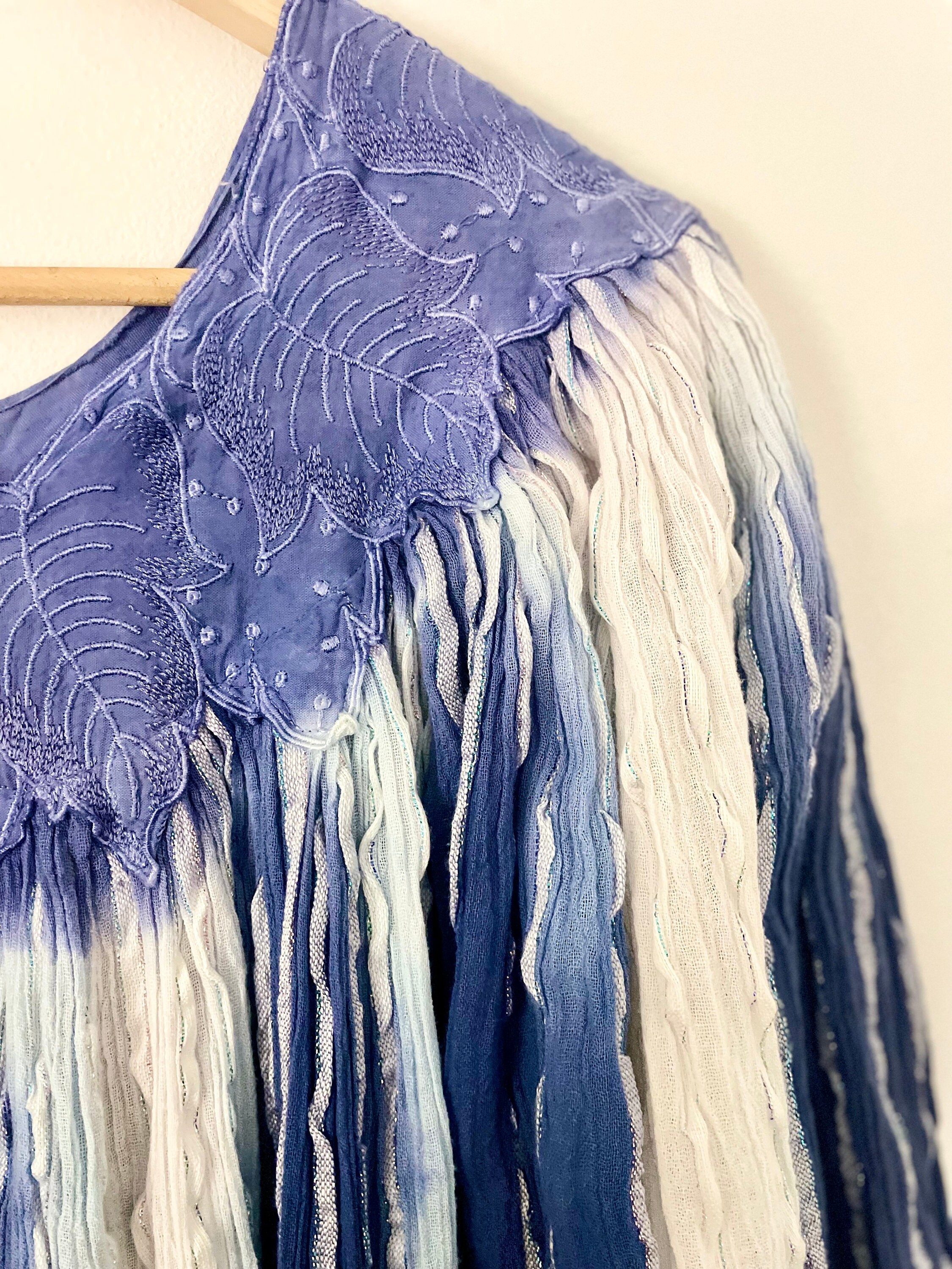 Beautiful, semi sheer cotton gauze in dip dye cream & blue w/ silver lurex and Bali care top