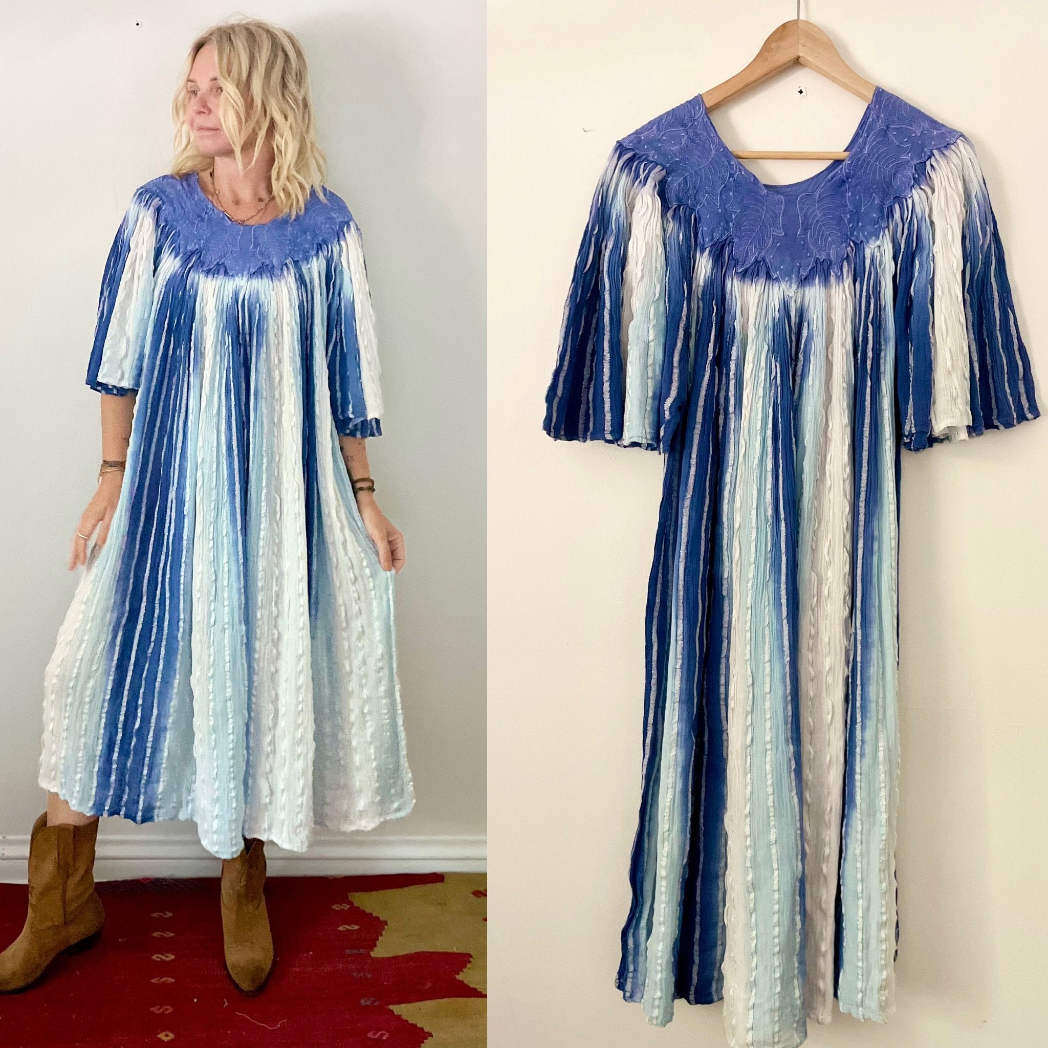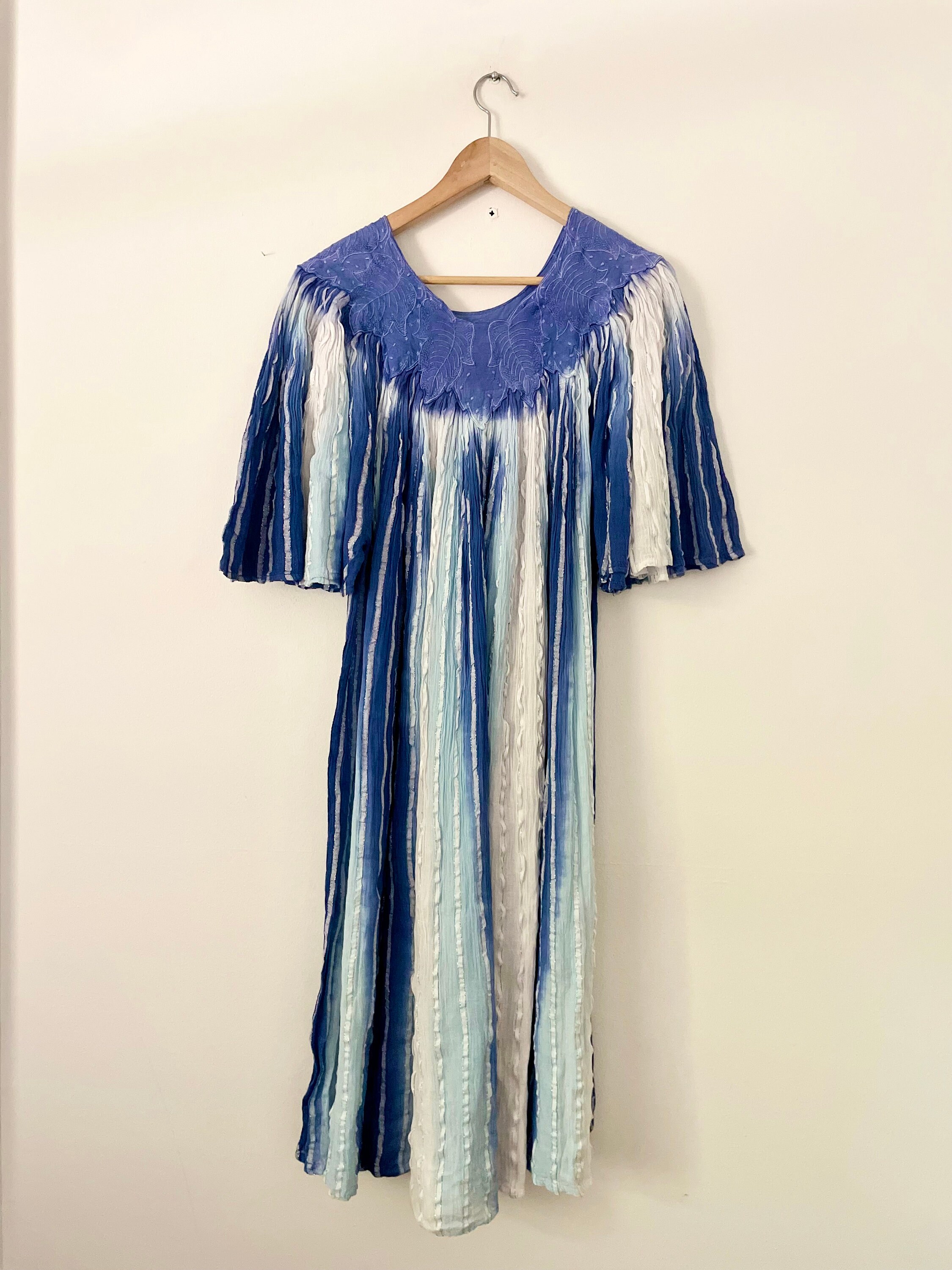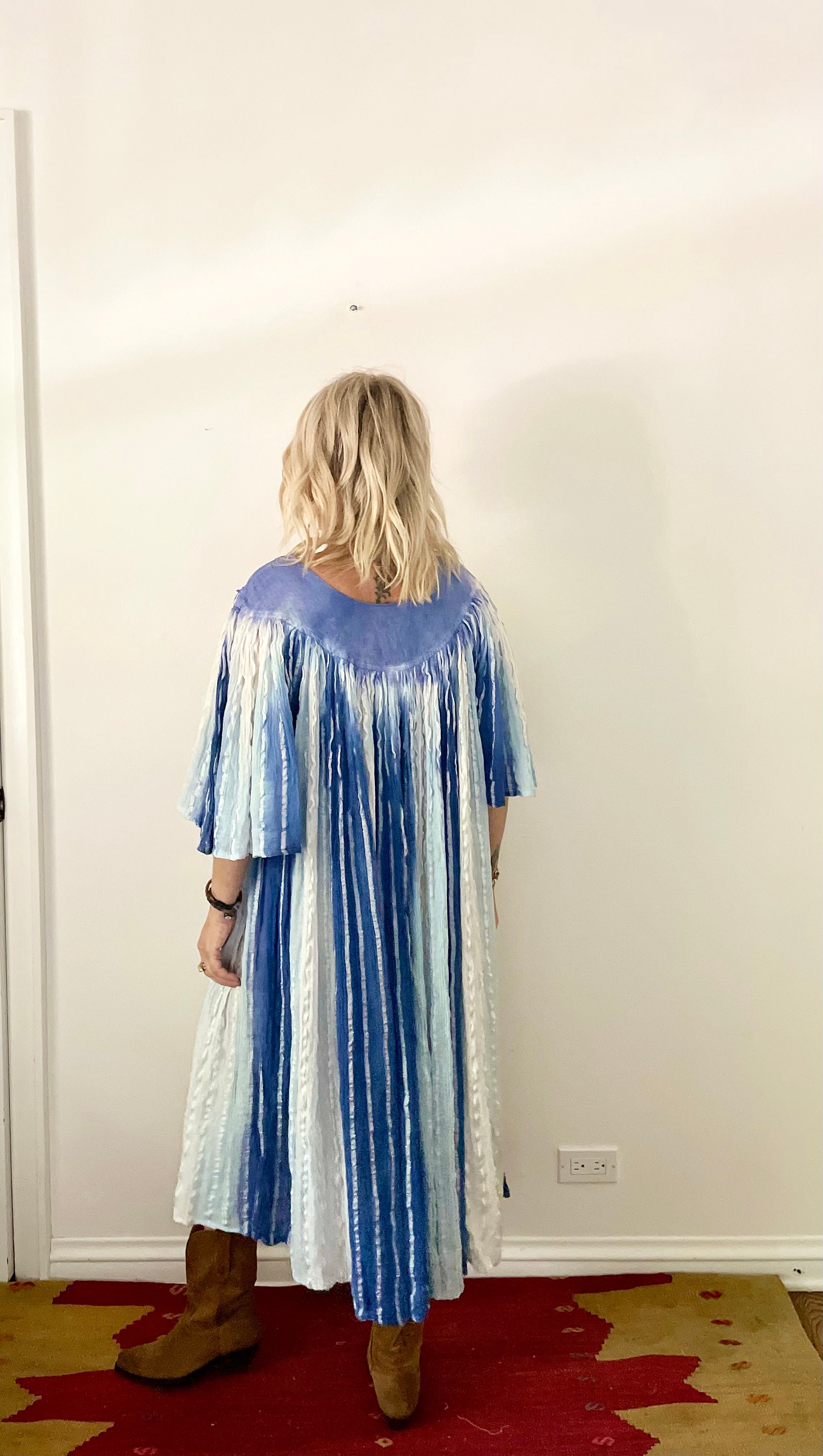 Beautiful, semi sheer cotton gauze in dip dye cream & blue w/ silver lurex and Bali care top
