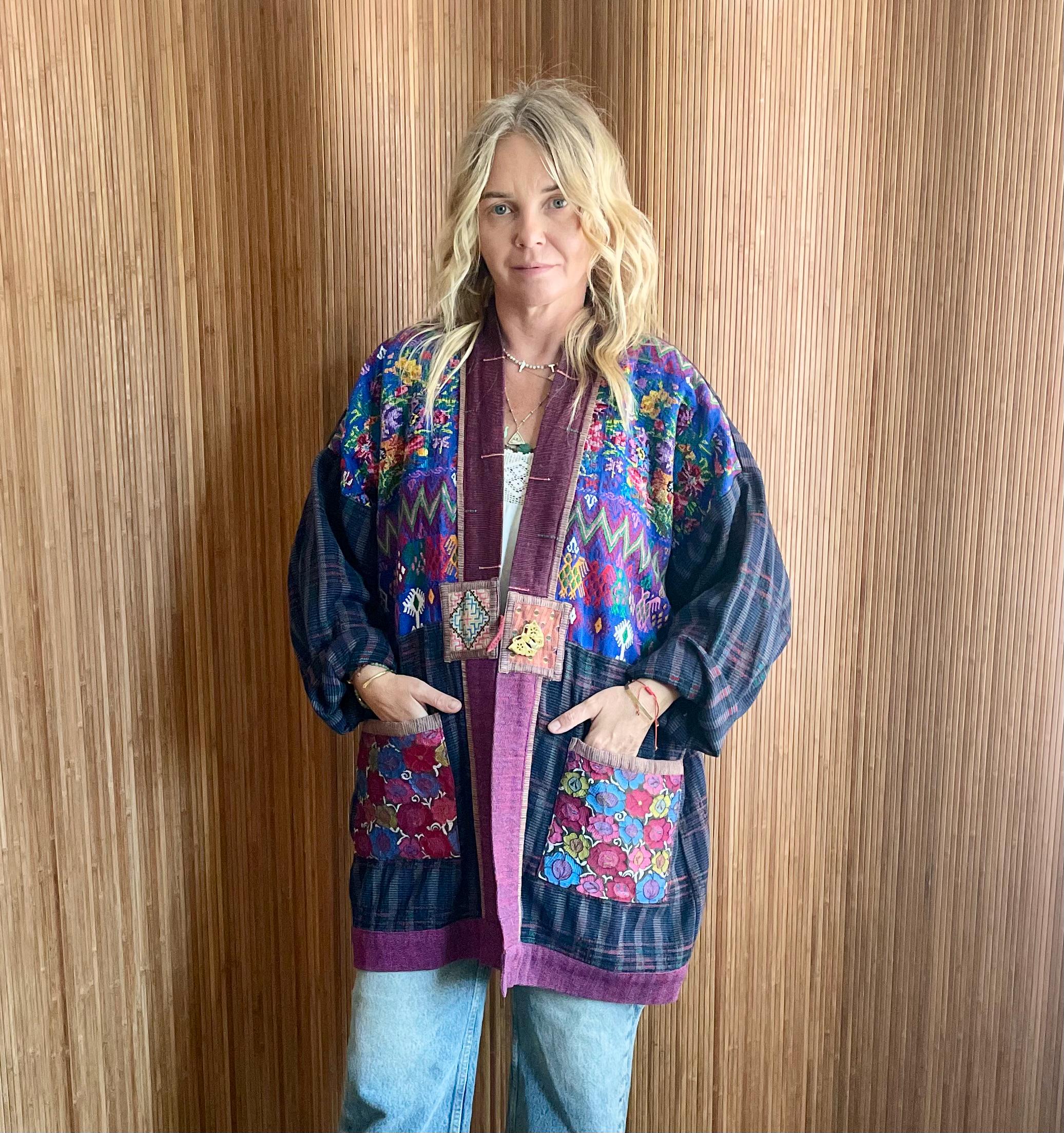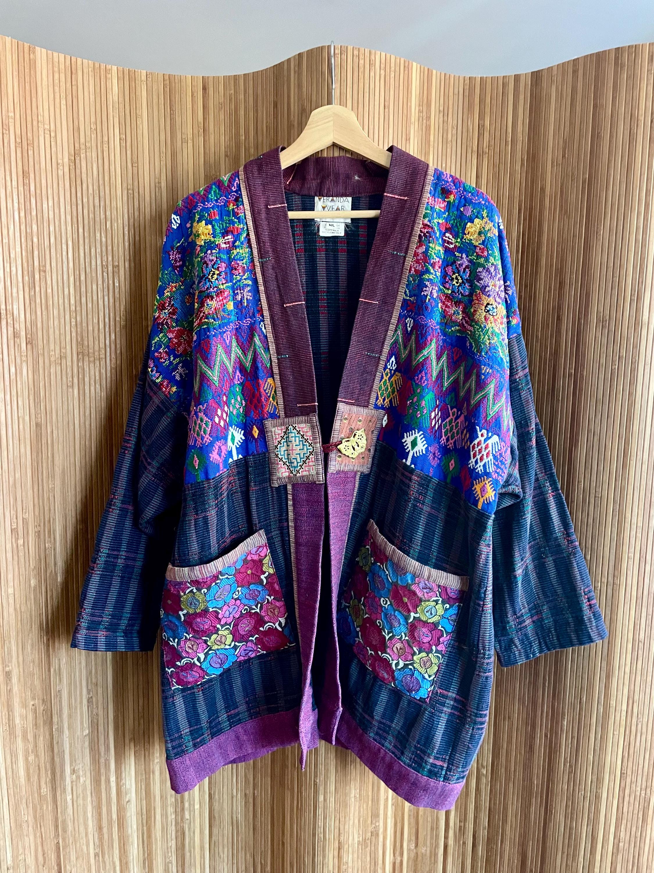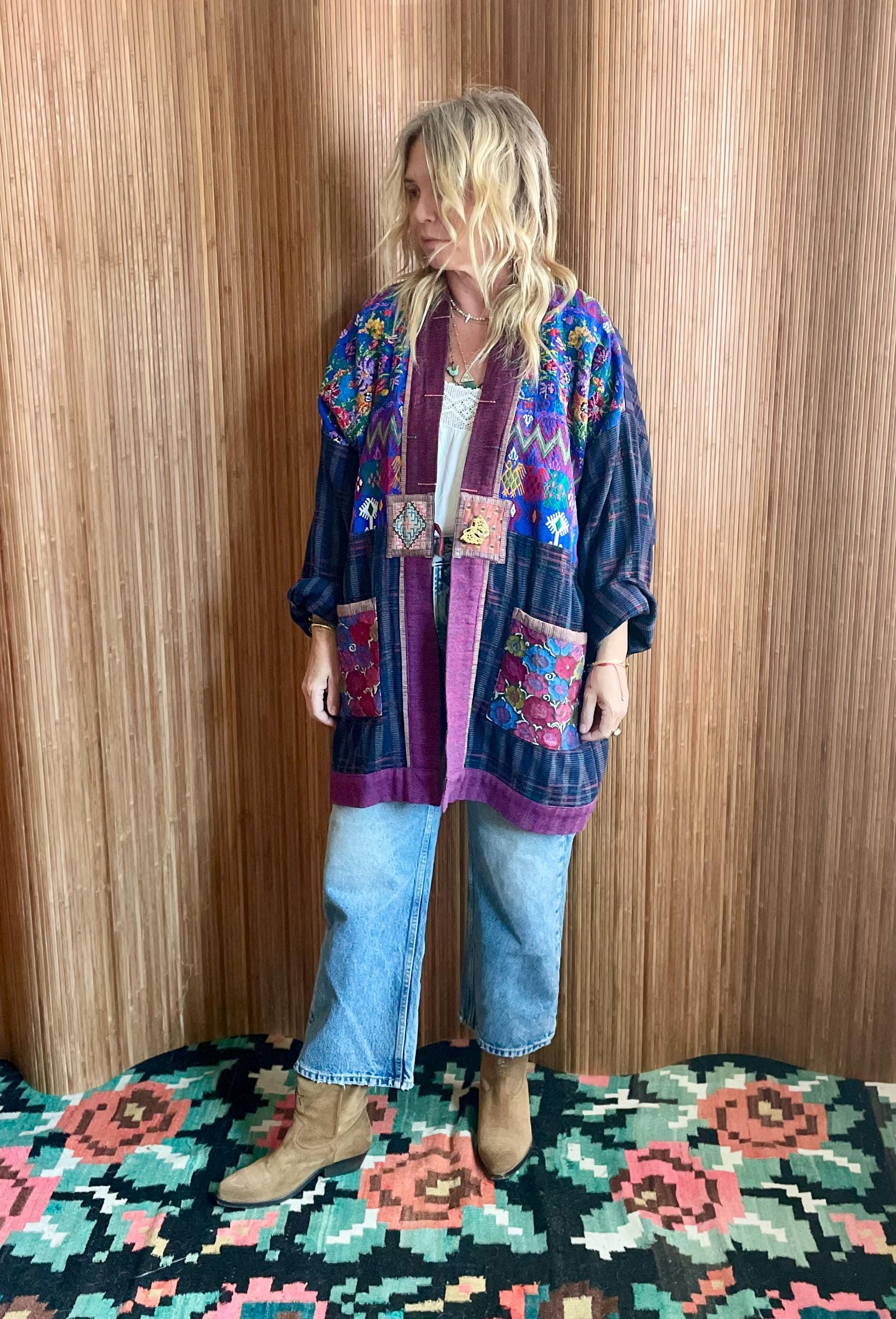 Wrap yourself in vibrant artisan heritage with this vintage Guatemalan handwoven jacket. Crafted from richly textured Mayan textiles in brilliant colors and geometric motifs, this piece tells the story of indigenous craftsmanship. The relaxed cut and bohemian vibe make it perfect for layering over dresses, jeans, or festival looks.