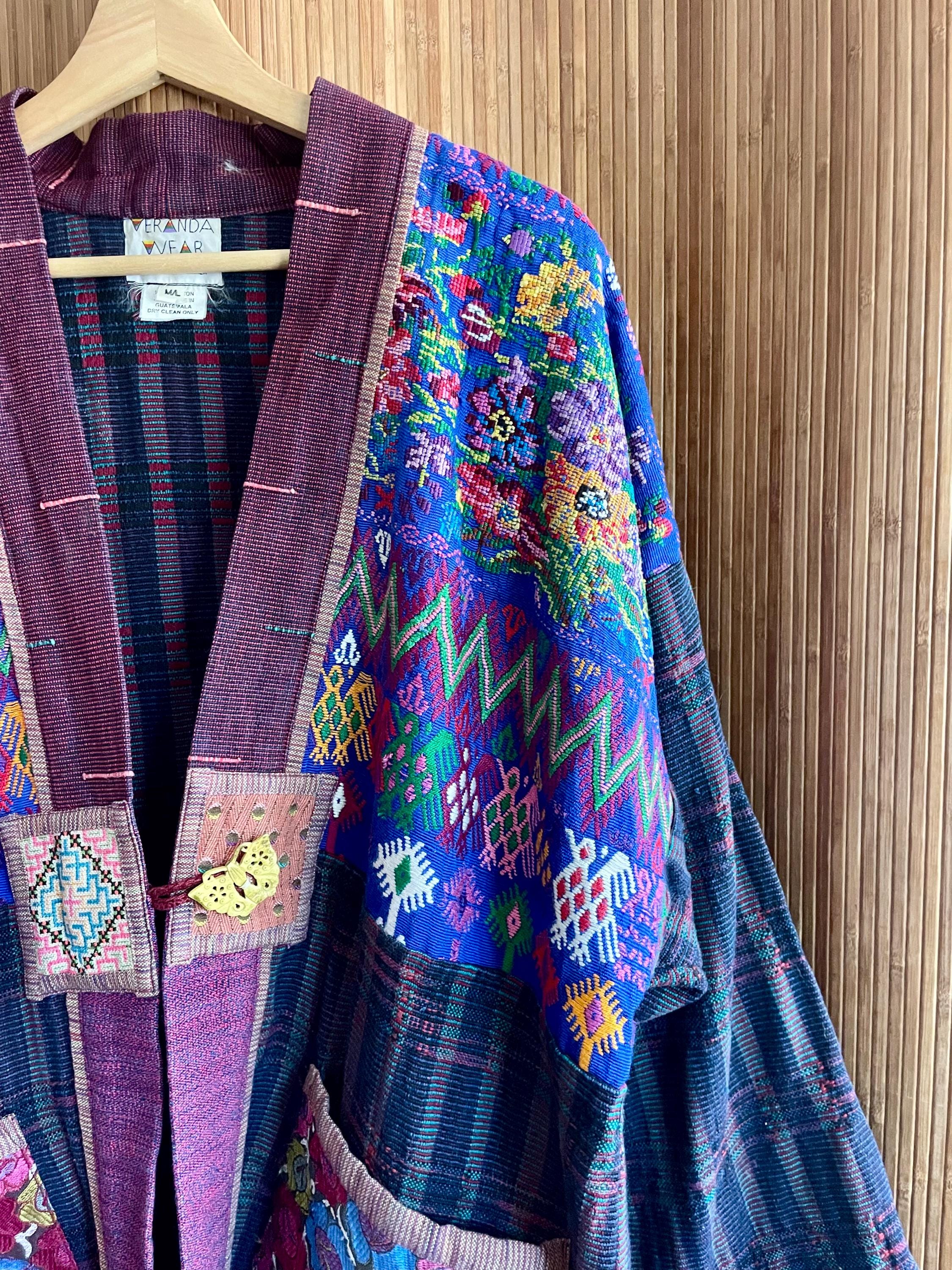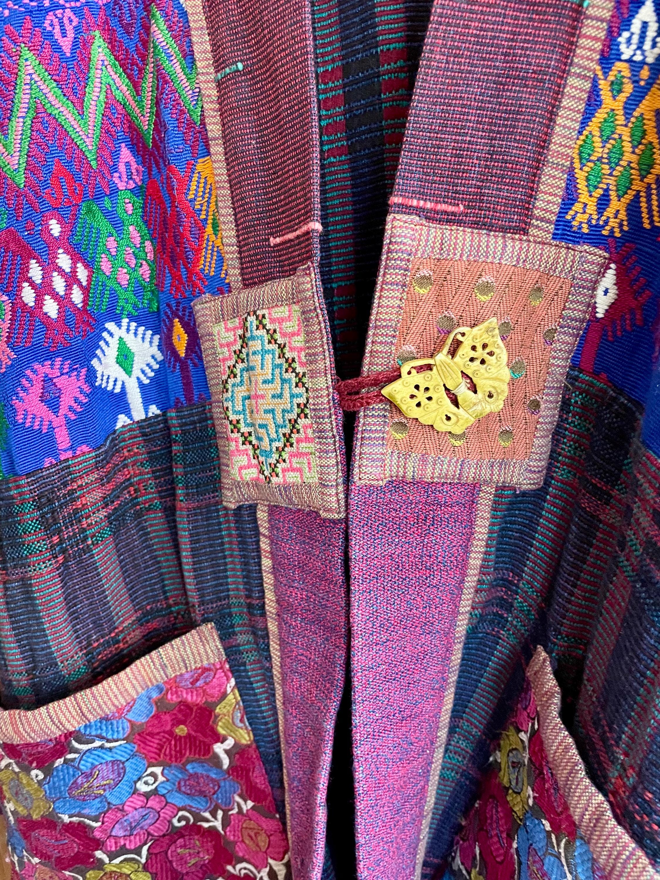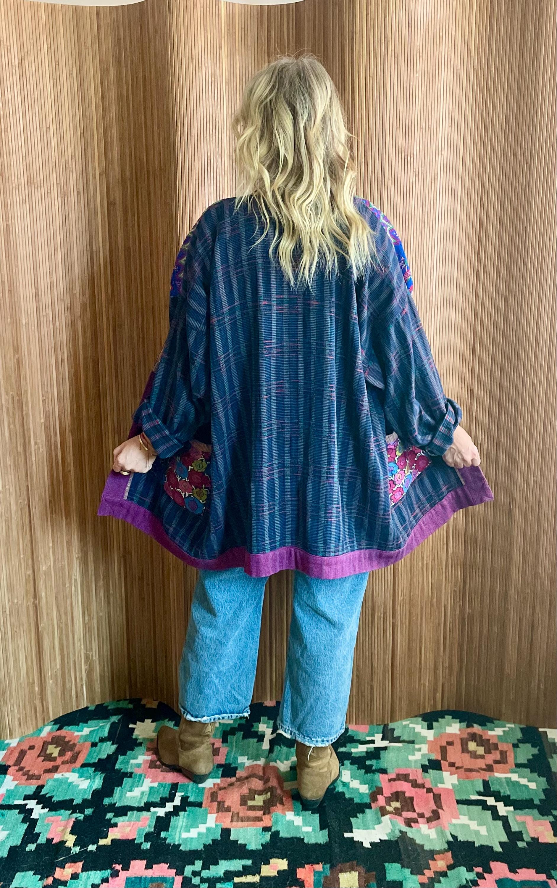 Wrap yourself in vibrant artisan heritage with this vintage Guatemalan handwoven jacket. Crafted from richly textured Mayan textiles in brilliant colors and geometric motifs, this piece tells the story of indigenous craftsmanship. The relaxed cut and bohemian vibe make it perfect for layering over dresses, jeans, or festival looks.