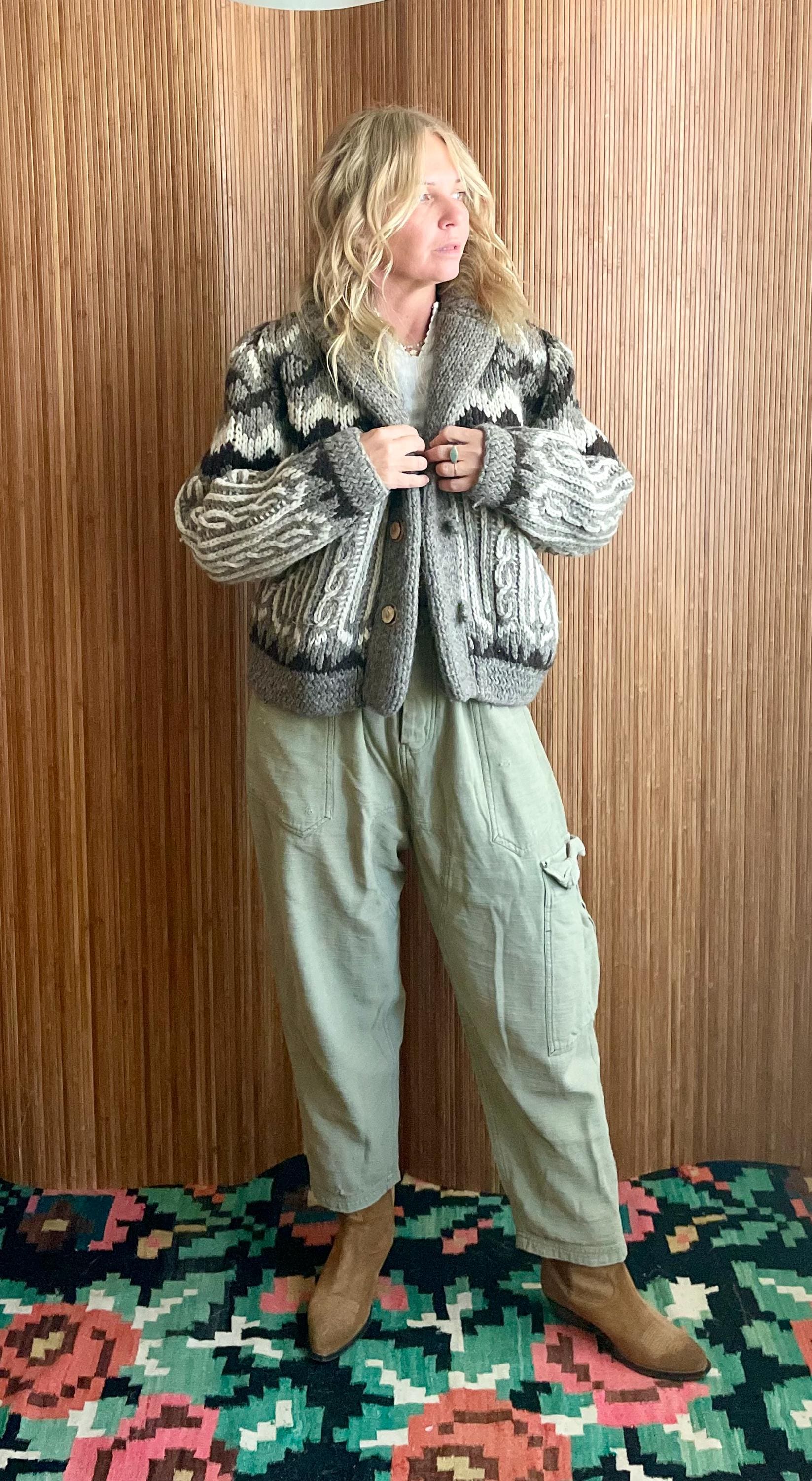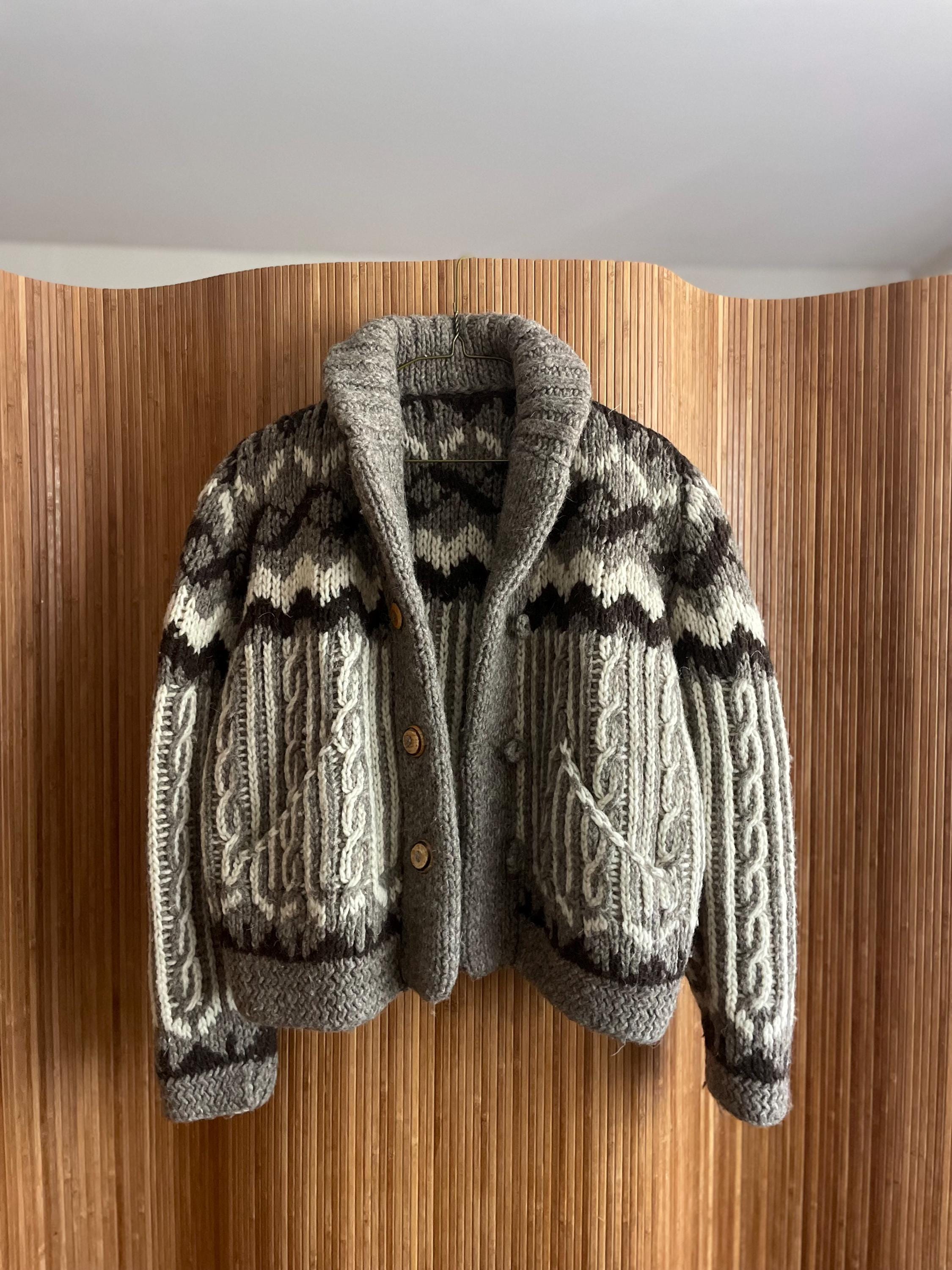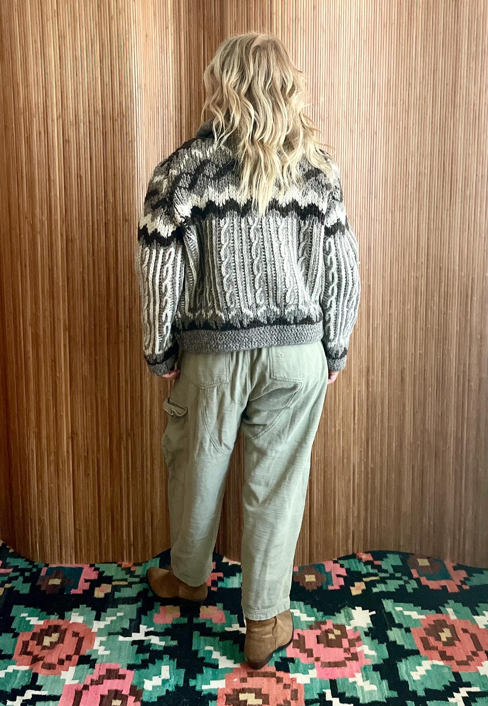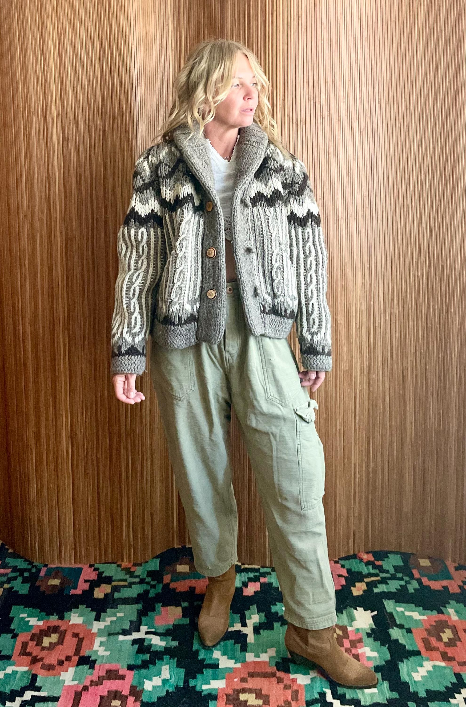 Presenting the cutest vintage 60s Mexican hand-knit crop cardigan. Featuring a unique cable knit pattern and bohemian flair, this short-length sweater is perfect for adding warmth and vintage style to any outfit. A testament to quality craftsmanship