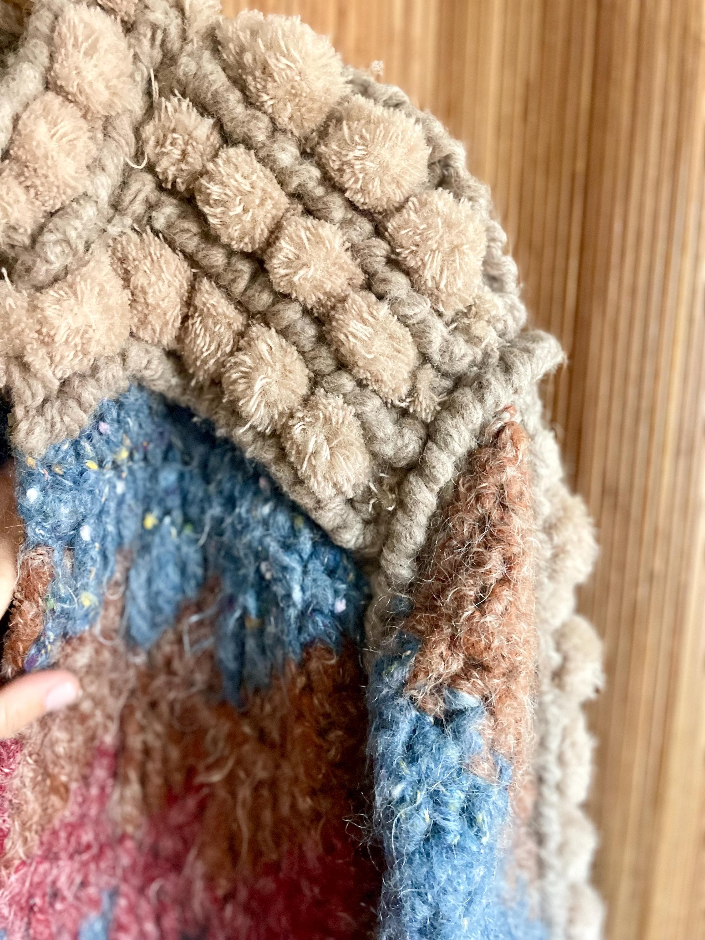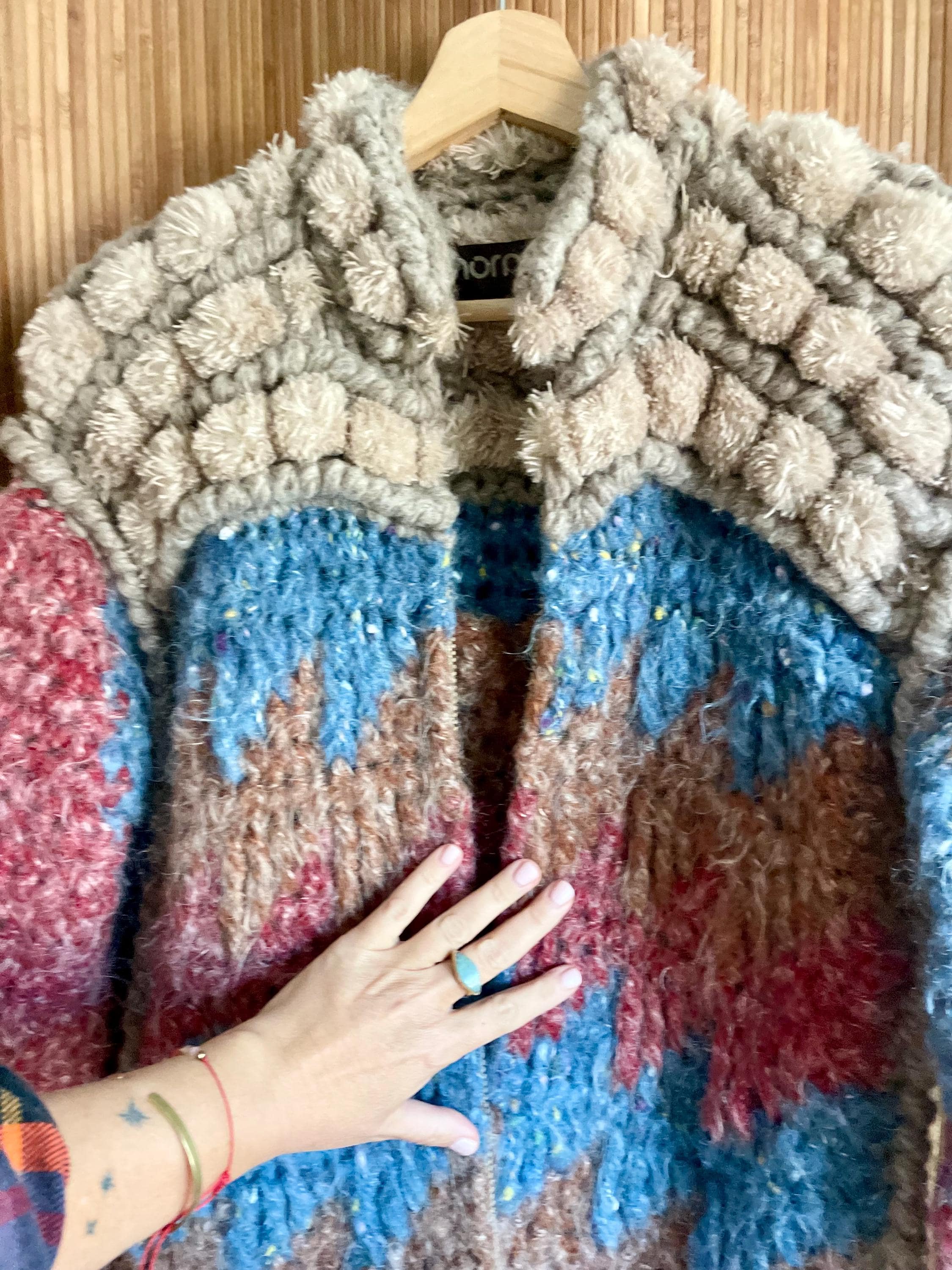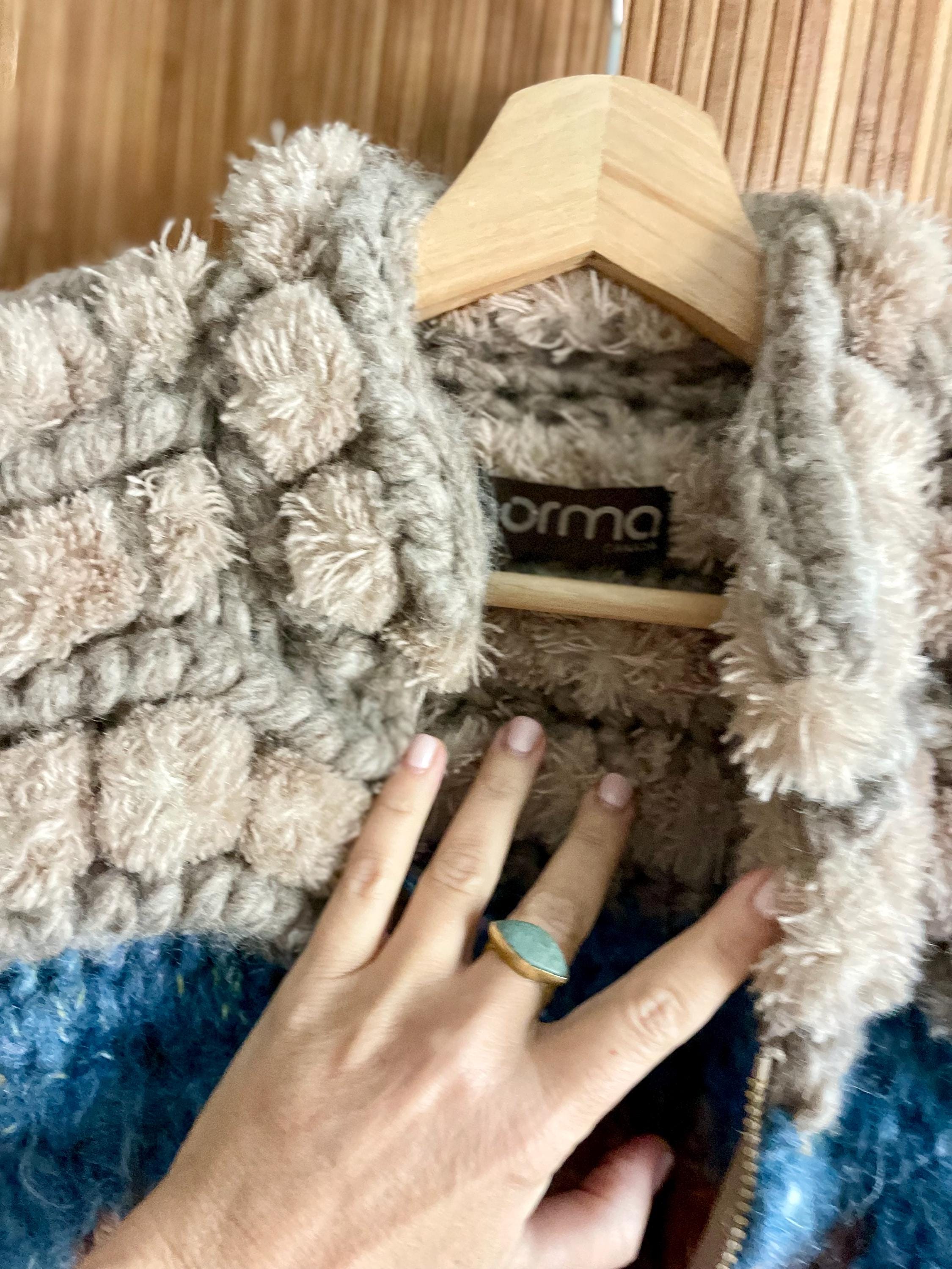 Discover this incredible and rare vintage Norma of Canada hand-knit wool sweater coat (very soft). Chunky, bubble knit cardigan in warm fall color way. Beautiful statement piece!