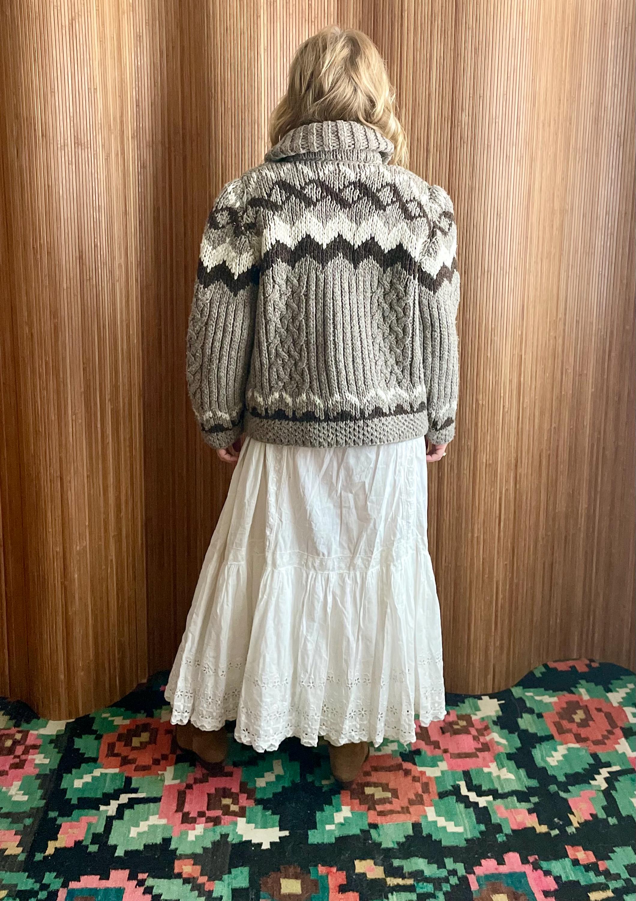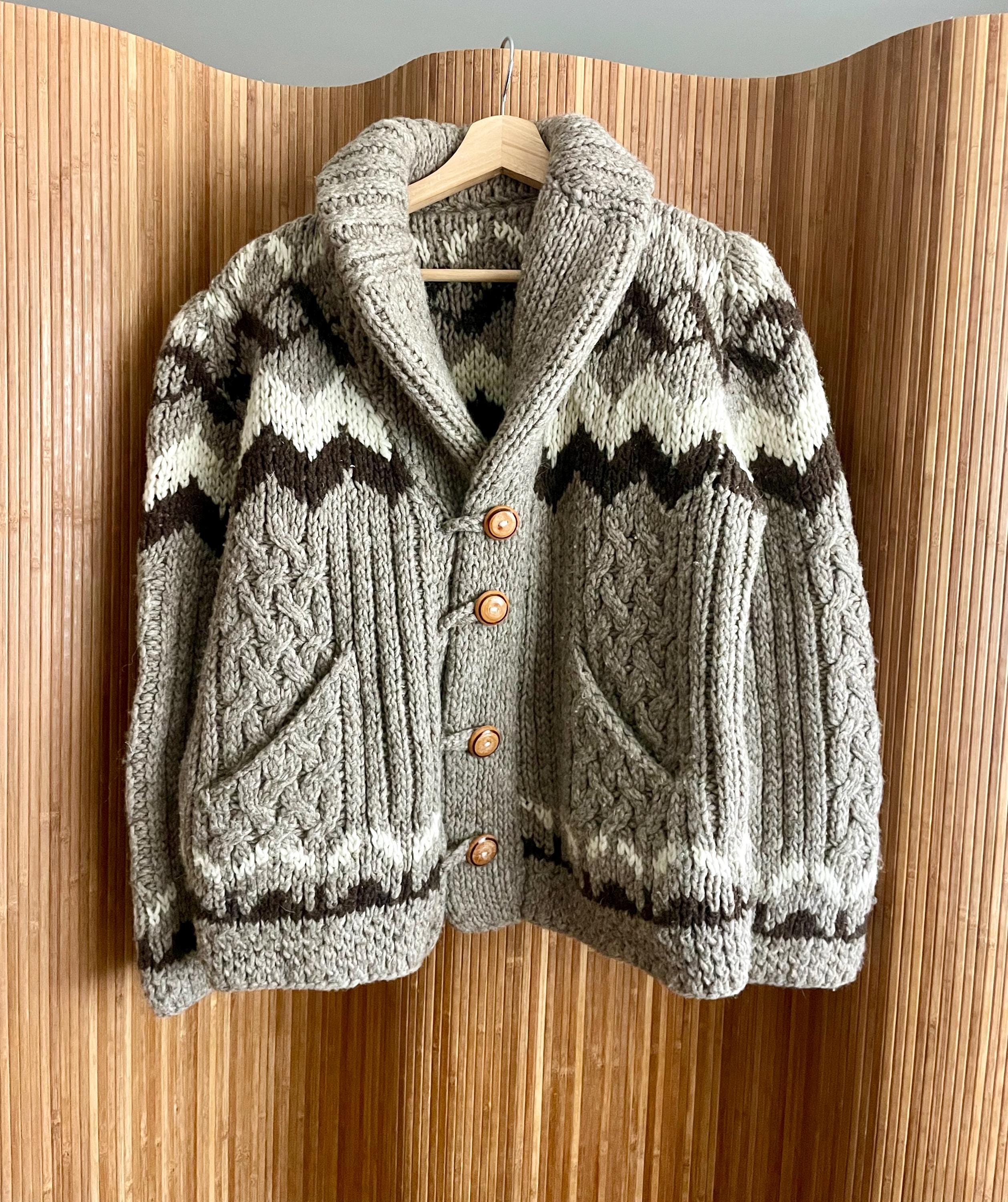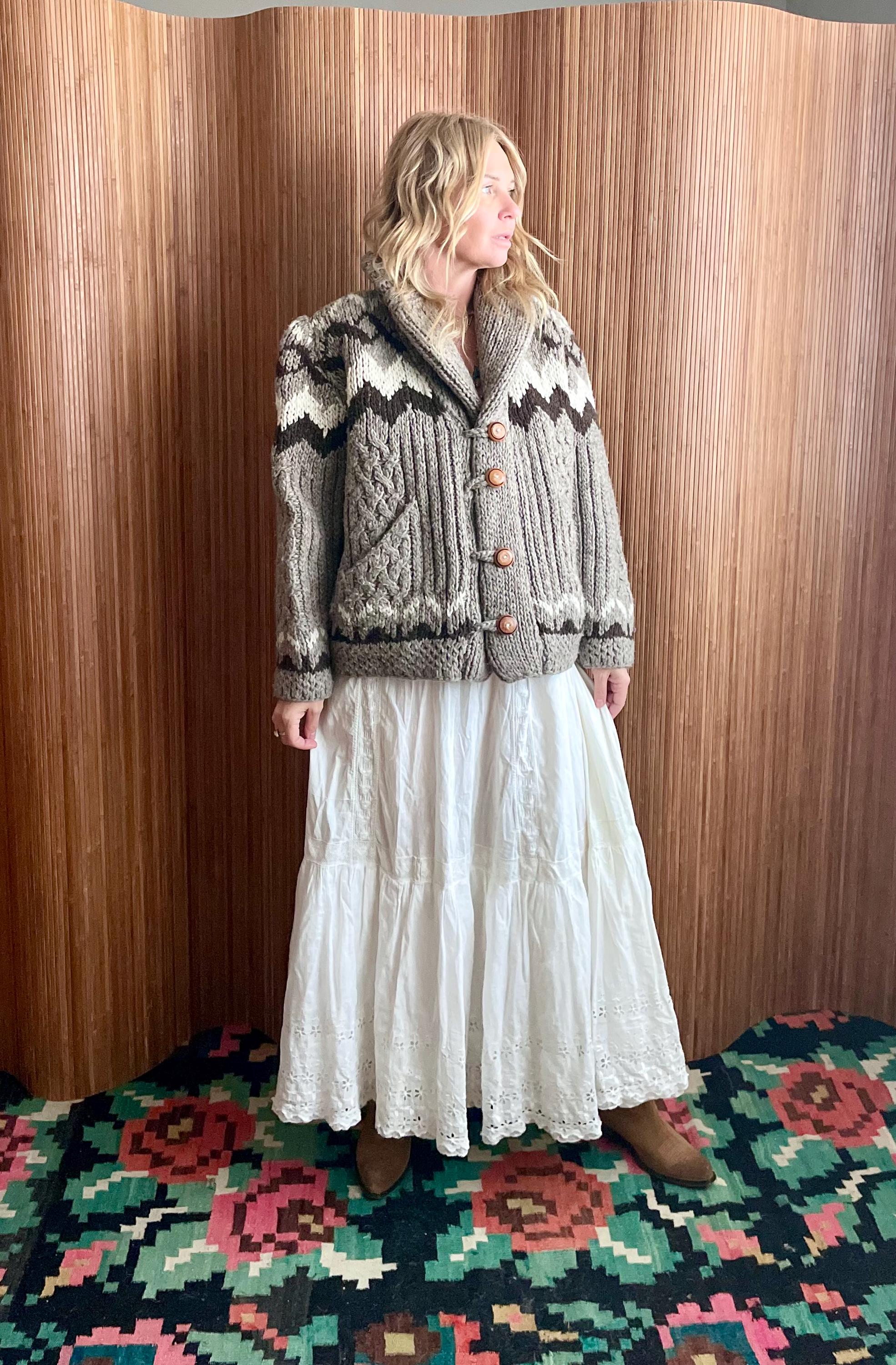 Presenting the cutest vintage 60s Mexican hand-knit crop cardigan. Featuring a unique cable knit pattern and bohemian flair, this short-length sweater is perfect for adding warmth and vintage style to any outfit. A testament to quality craftsmanship