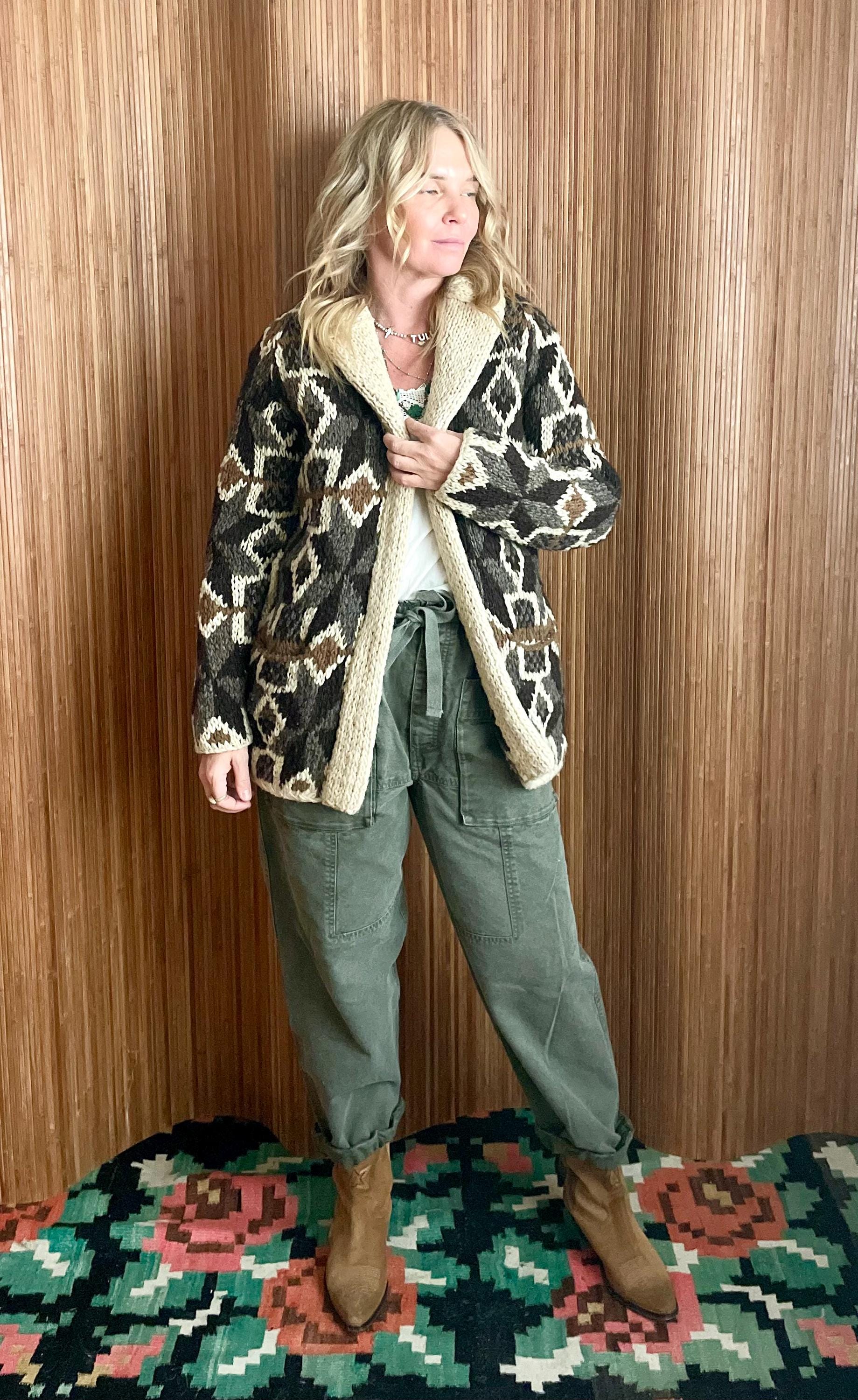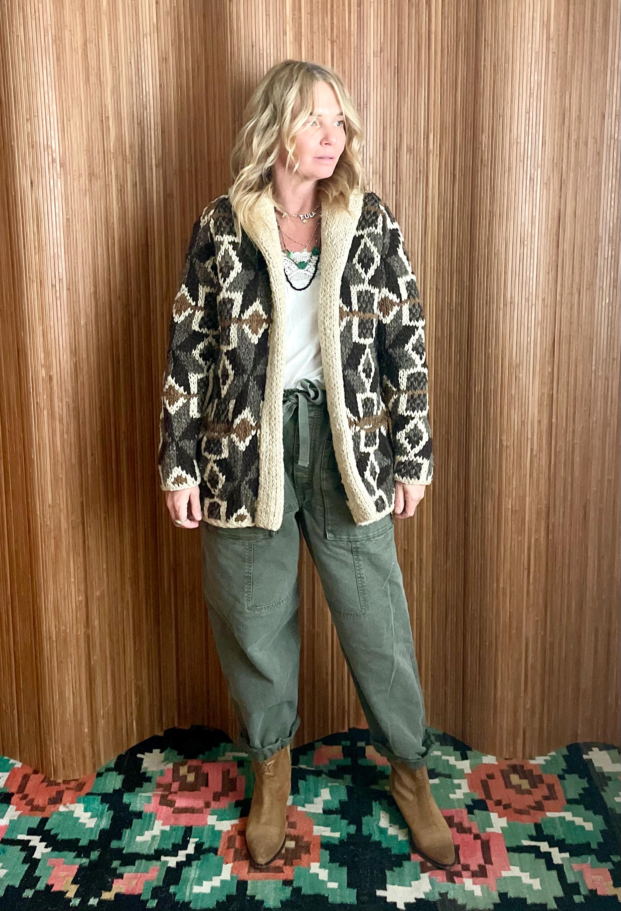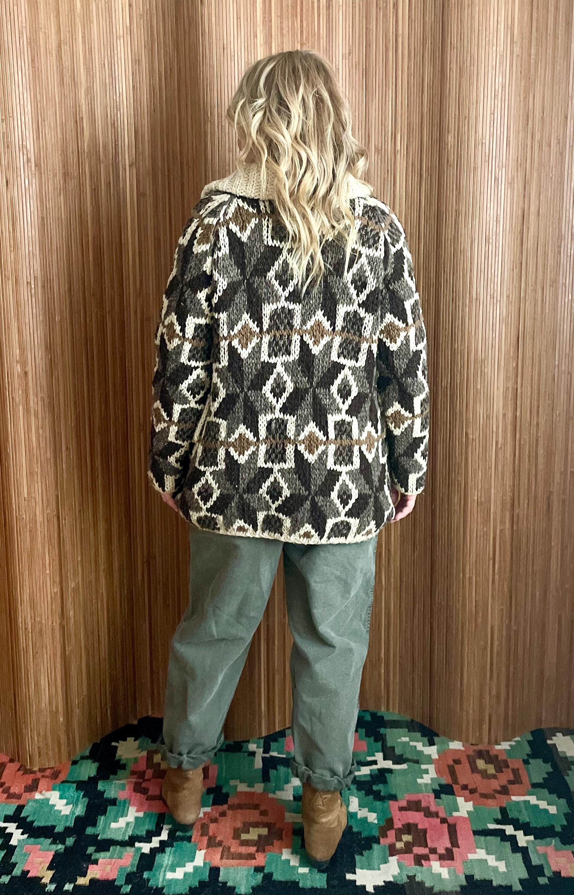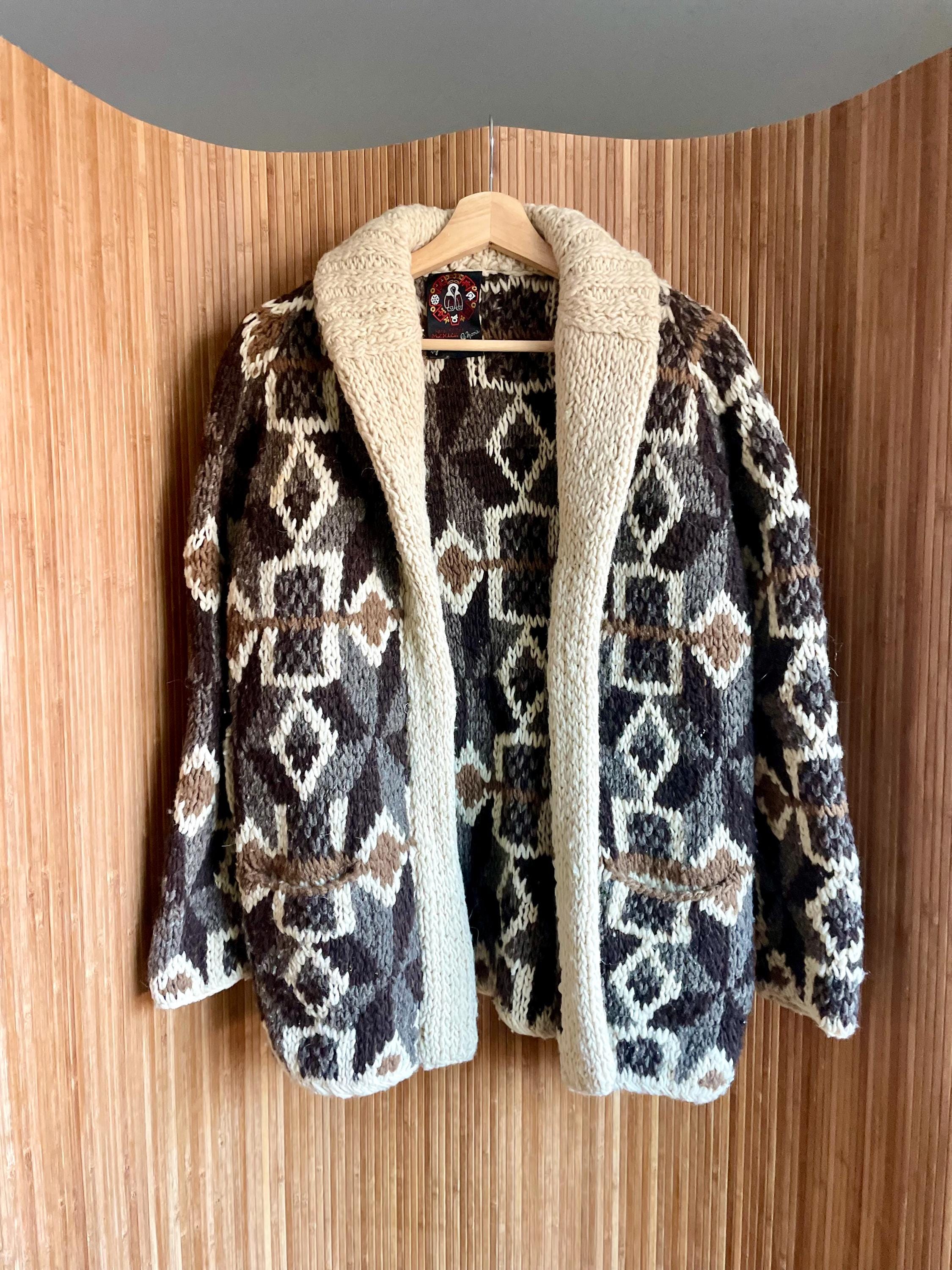 1960s Mexican wool cardigan with rolled collar and two front packets