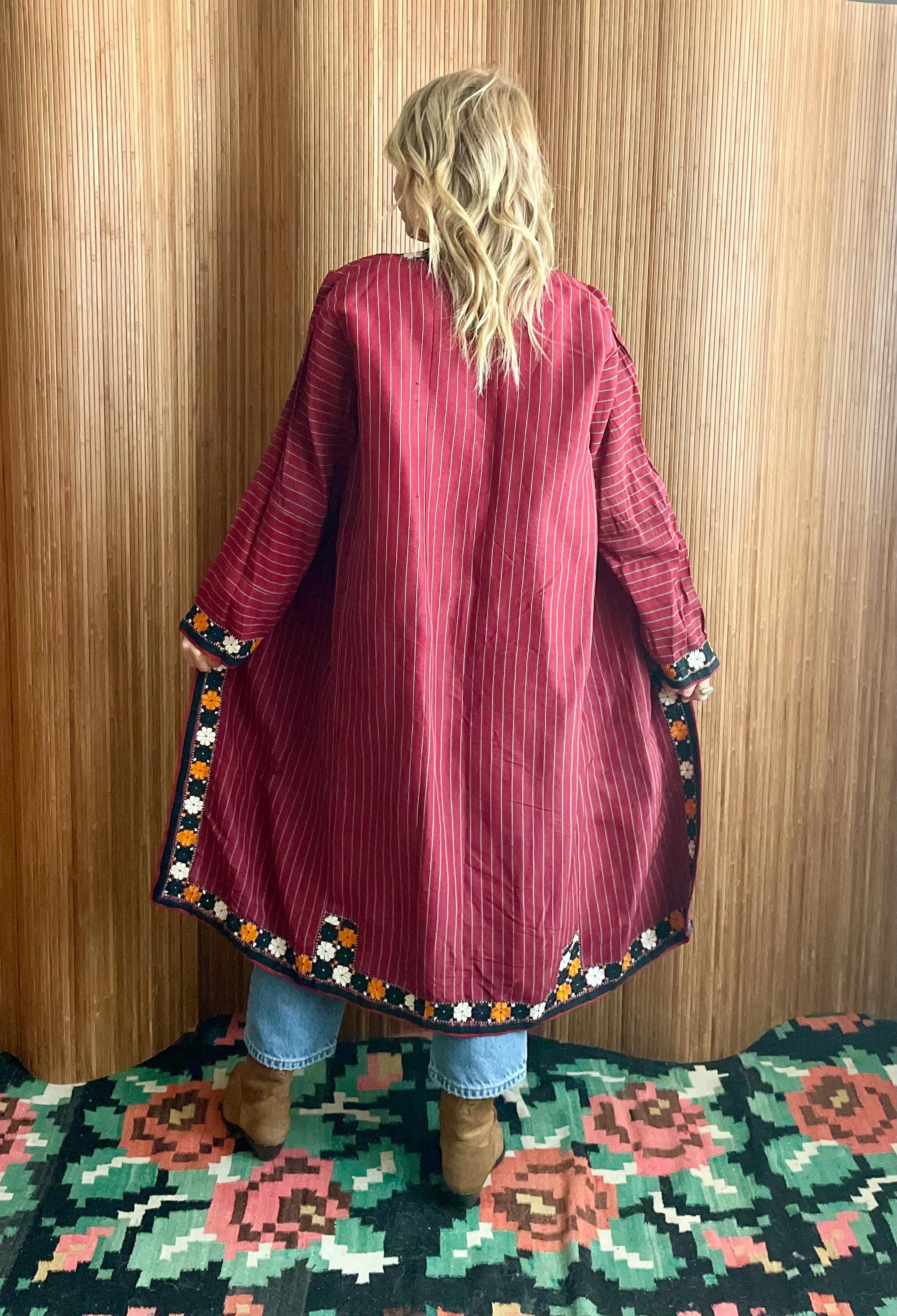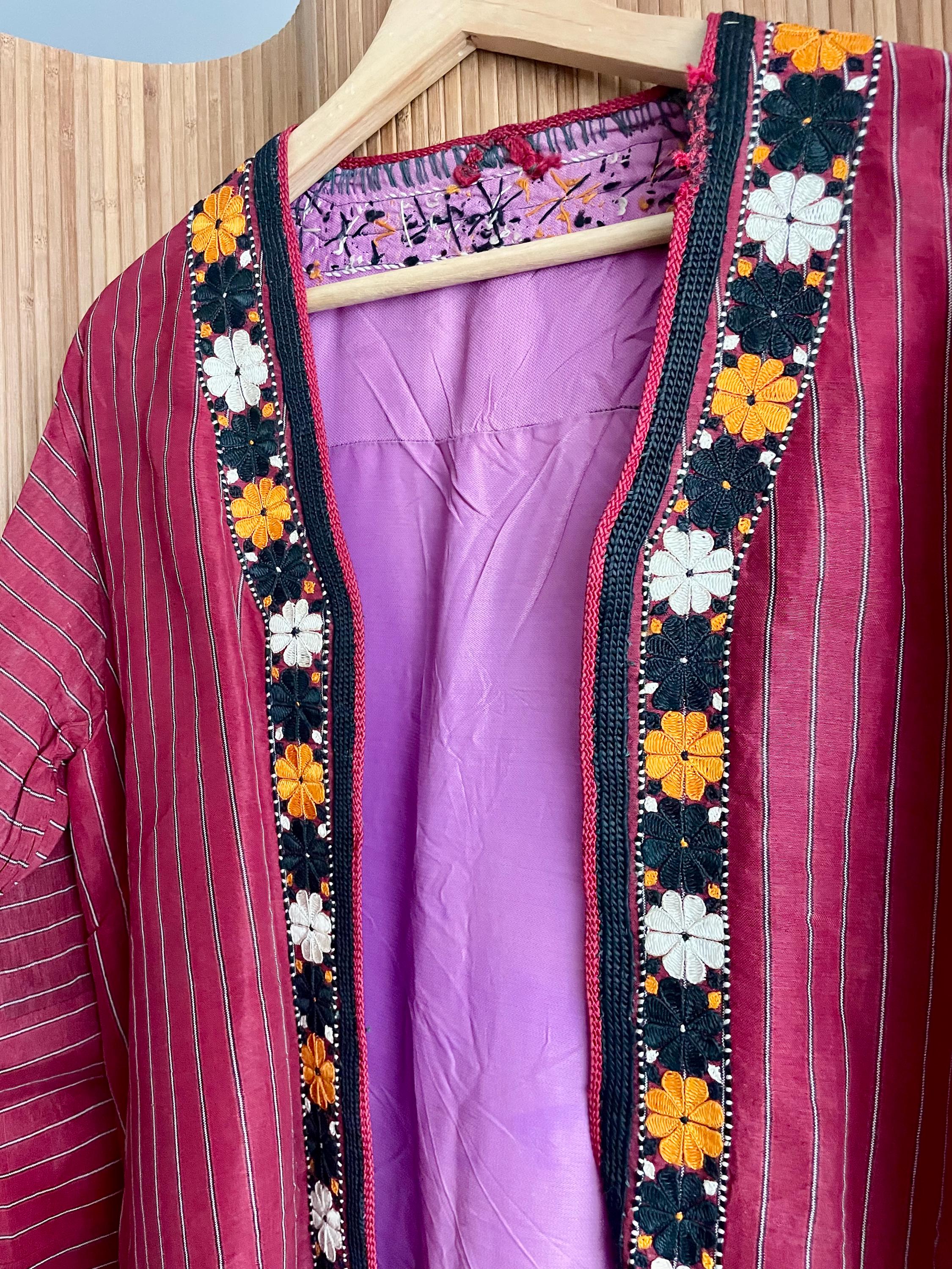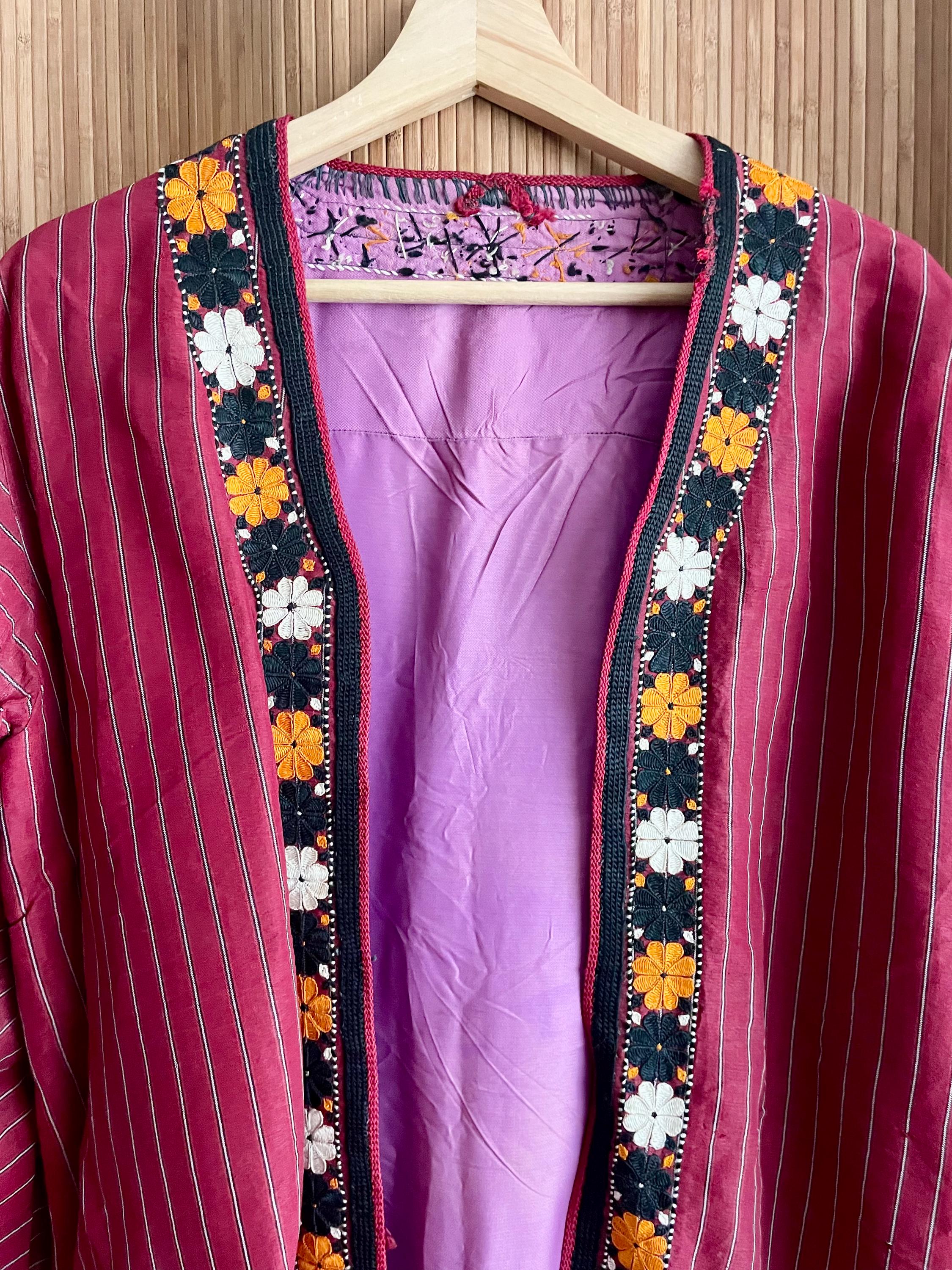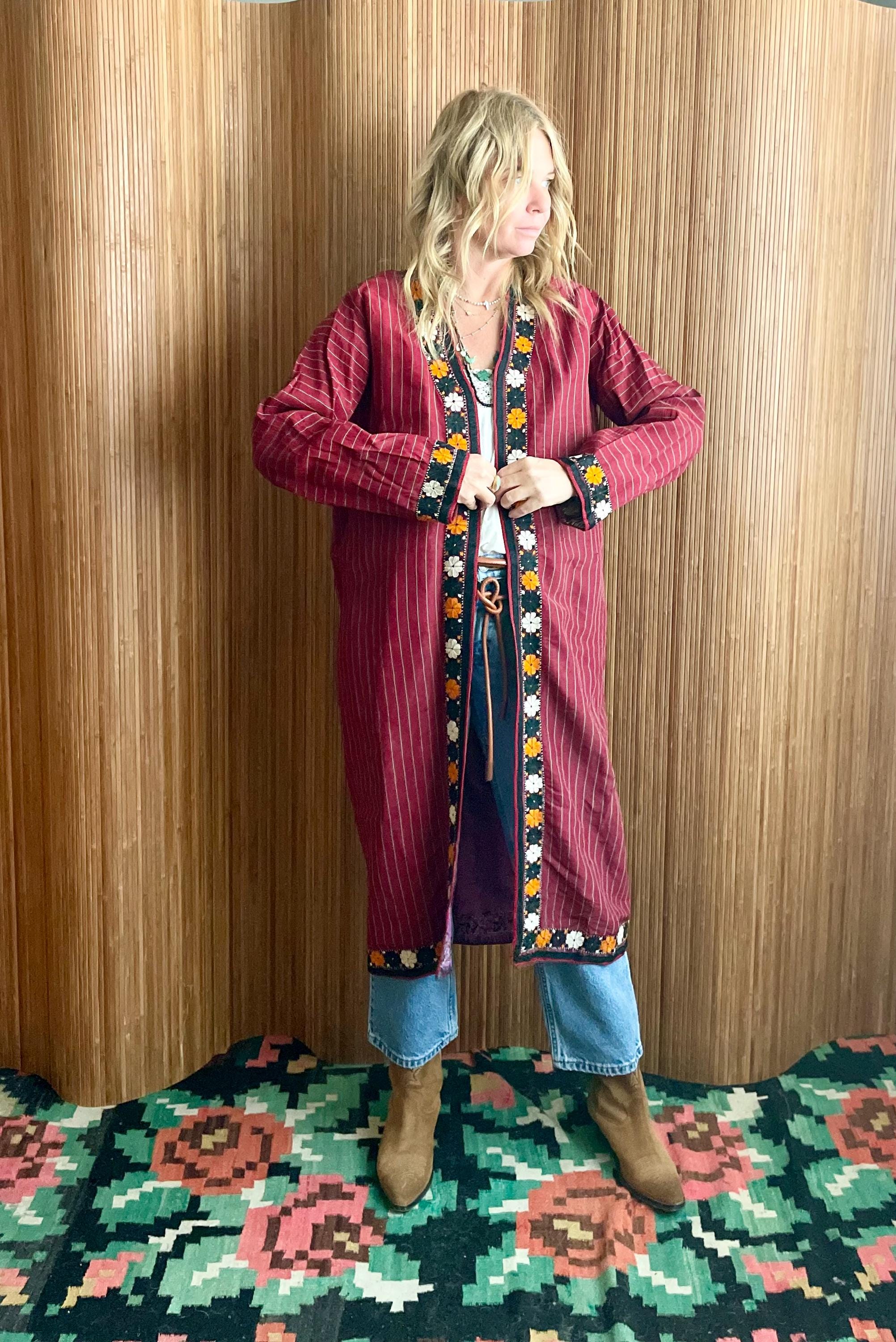 This breathtaking Vintage Ottoman Silk Embroidered Duster Jacket is a true work of art.
