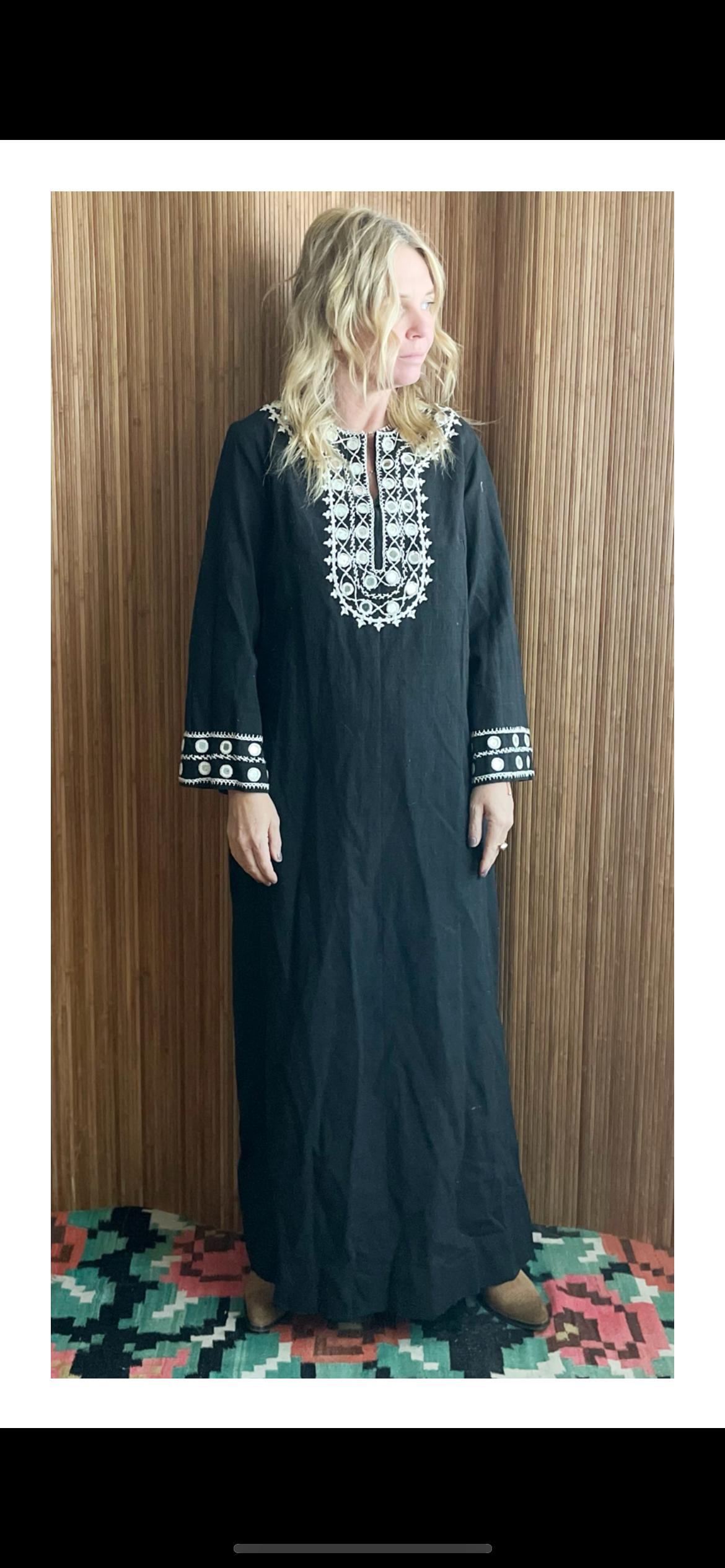 Very RARE, 70s mirrored and embroidered maxi caftan by Lord and Taylor